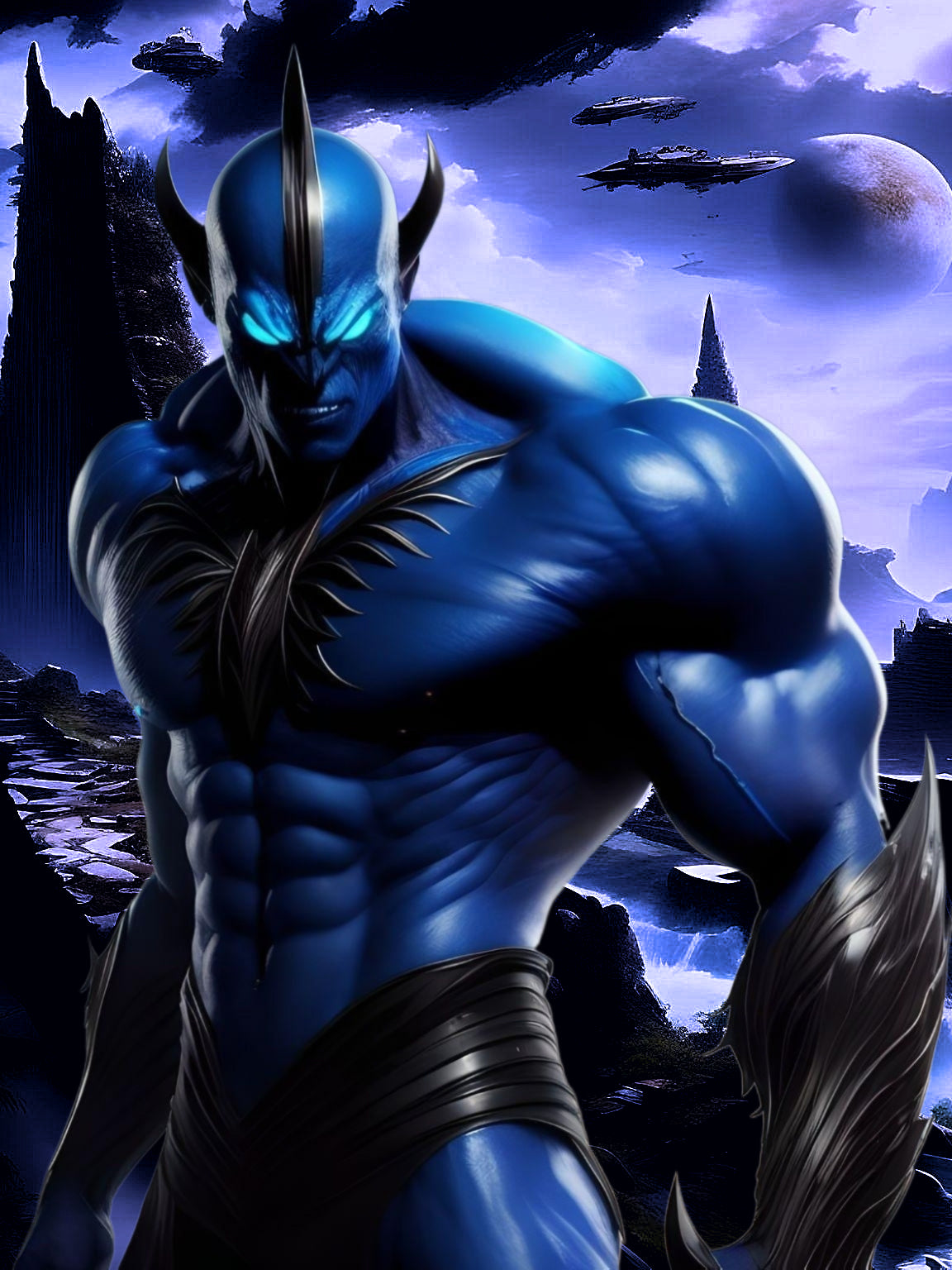 Lord Raider of the Kravii Torden Clan. Newly appointed, but he has big designs for the Federation and his nemesis, the Unfallen. Here seen on Kravos in the light of the Voror moon. [Appearing in Book 2]